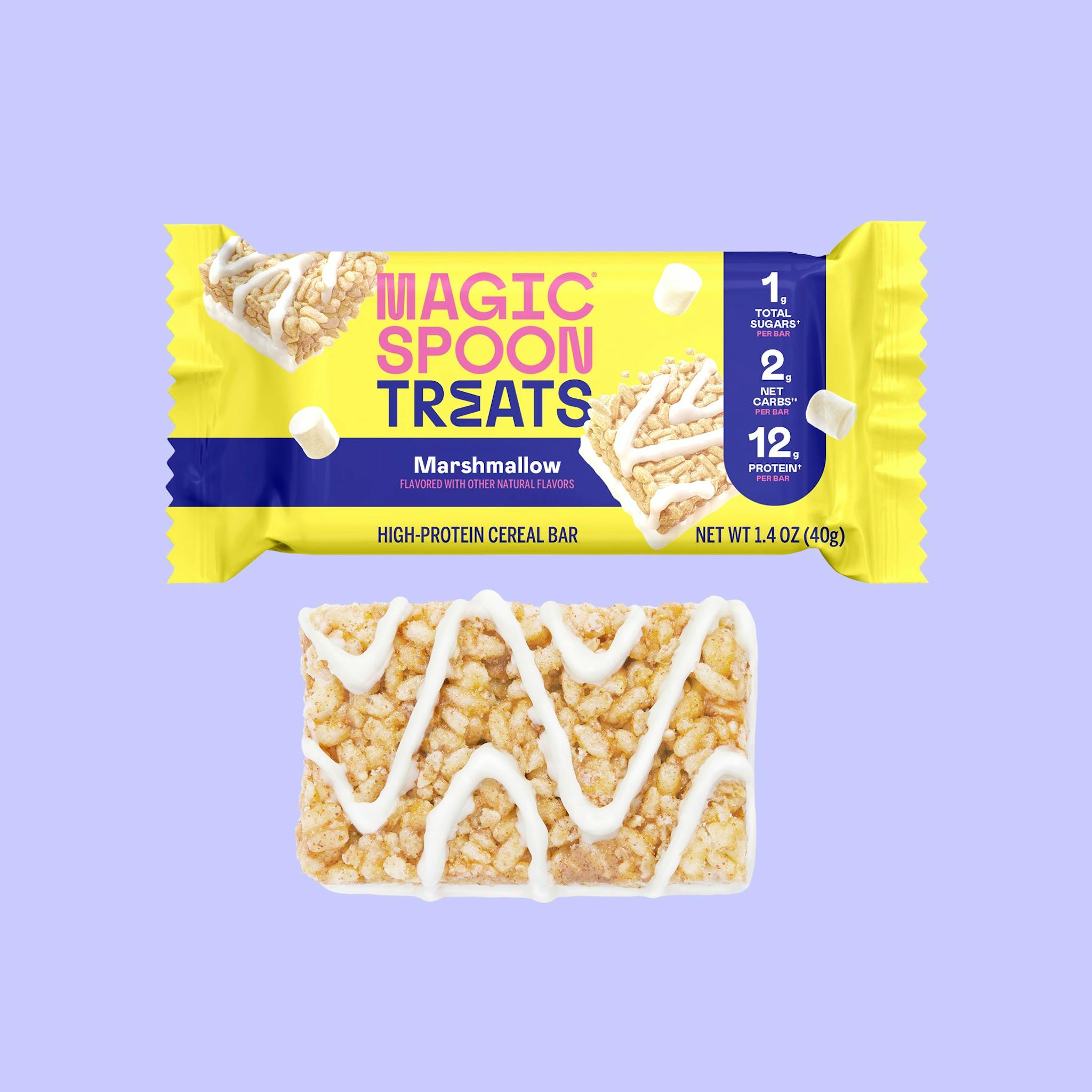 Need Magic Spoon on-the-go? We turned our delicious, high-protein cereal into a high-protein Treat! Tastes just like those classic, crispy cereal bars with 11-12g protein, 1g added sugars, and none of the artificial ingredients.