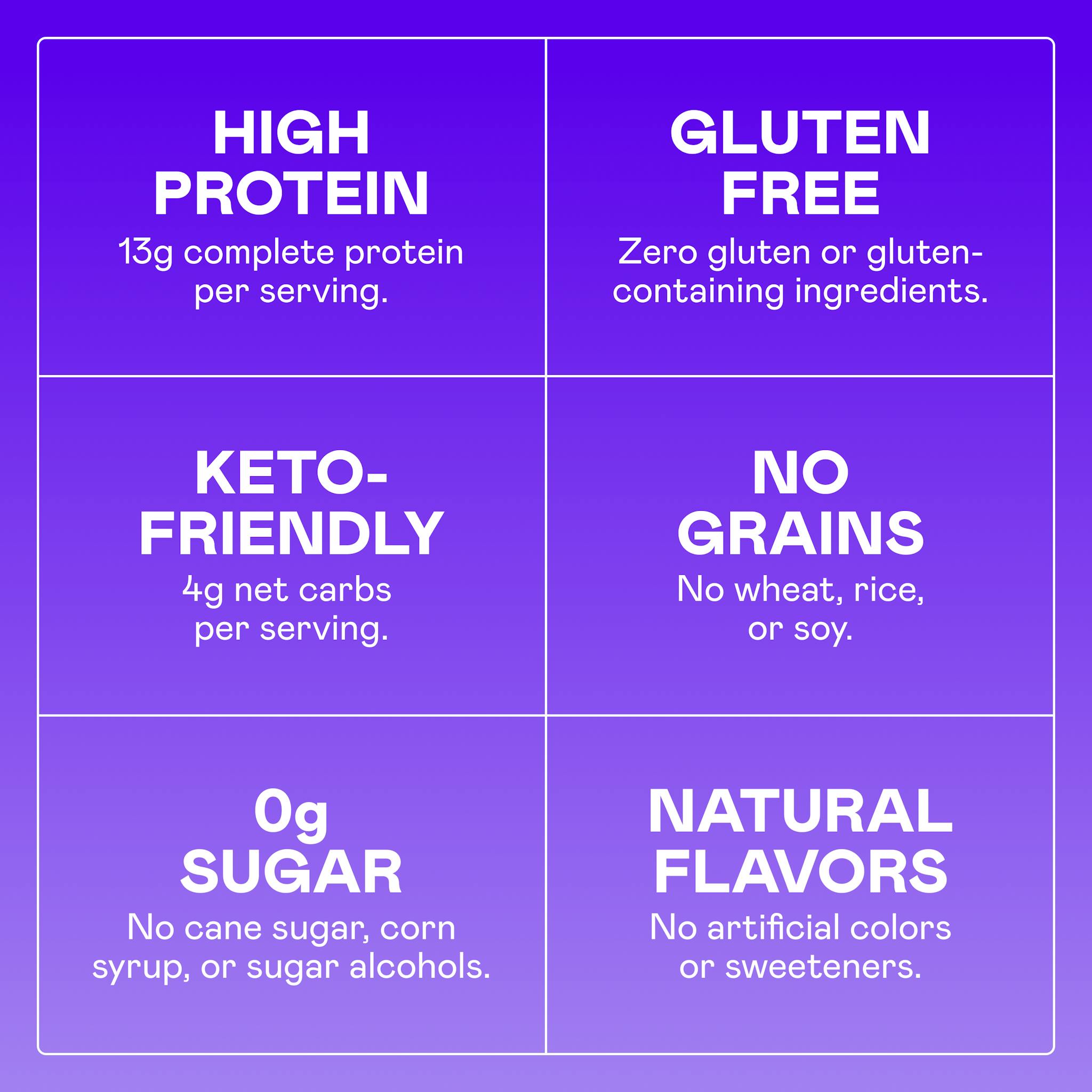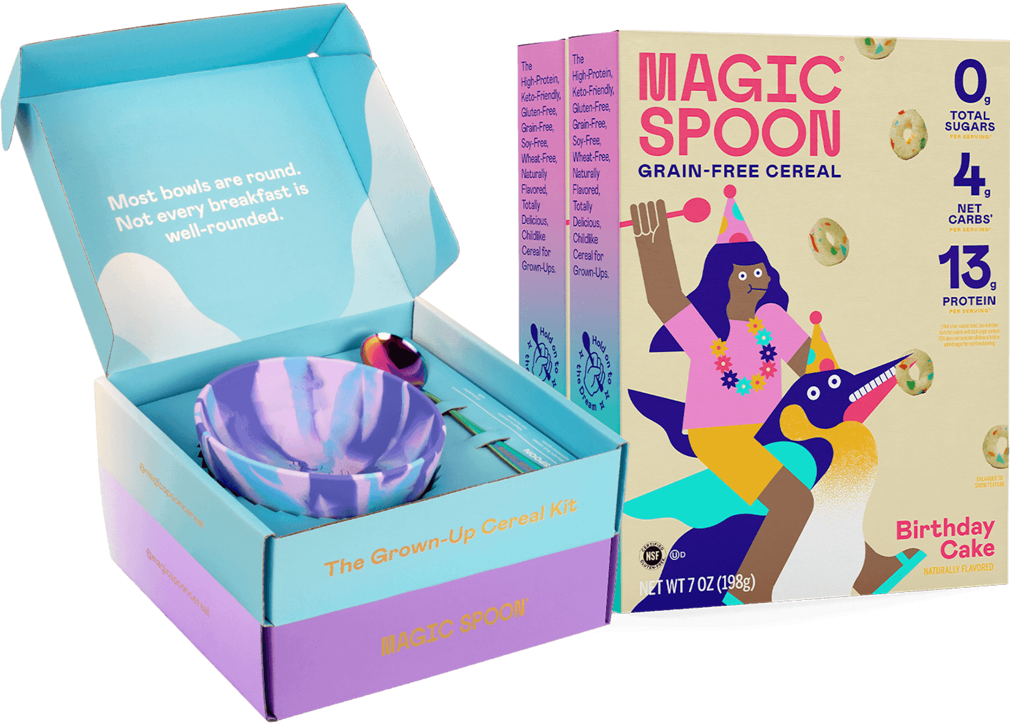 Make every bowl a party with 2 boxes of Birthday Cake, our deliciously golden cake flavor with a hint of vanilla and plenty of sprinkles, plus 2 festive bowls with a surprise at the bottom. And with 4g net carbs, 13g complete protein, and no artificial ingredients, it’s always a good time.