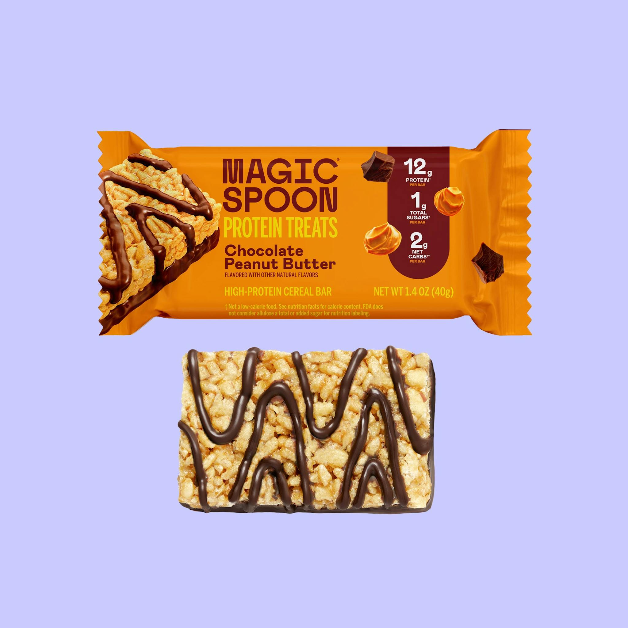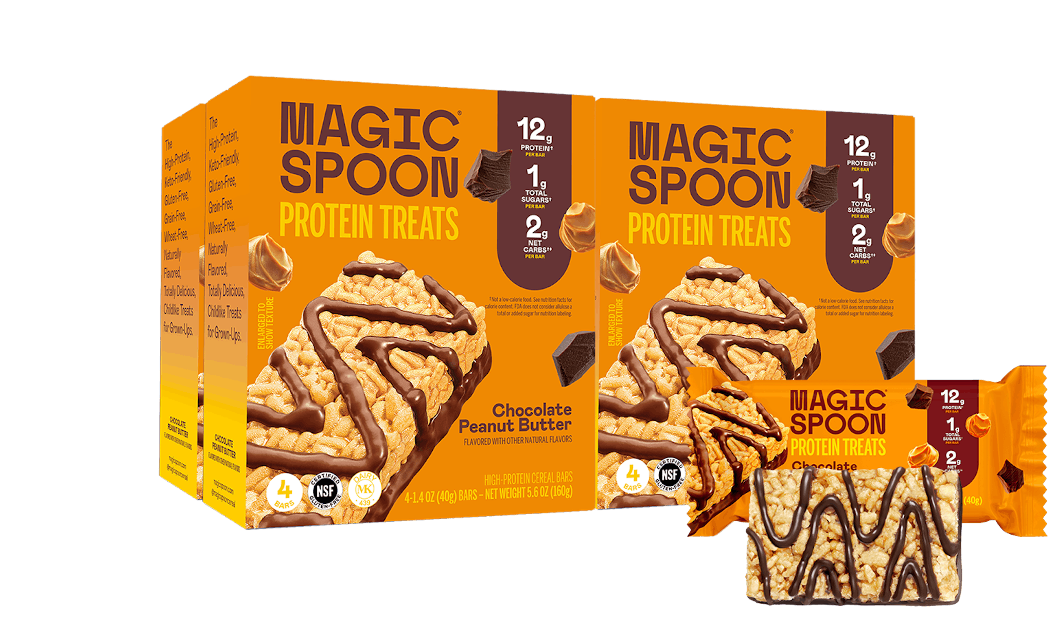 Need Magic Spoon on-the-go? We turned our delicious, high-protein cereal into a high-protein Treat! Tastes just like those classic, crispy cereal bars with 11-12g protein, 1g added sugars, and none of the artificial ingredients.