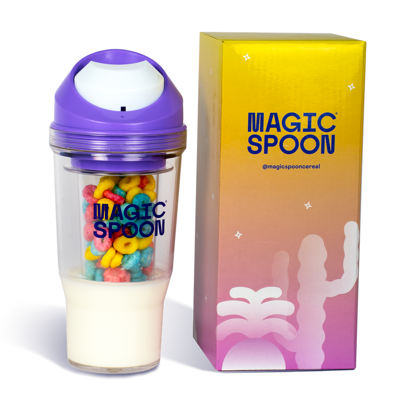 Say goodbye to soggy cereal, The Magic Spoon CrunchCup® keeps your cereal crunchy. Simply add Magic Spoon cereal to the inner cup, milk into the outer cup, screw on the lid, and you're ready to crunch. The milk and cereal don't meet until it's time to eat.