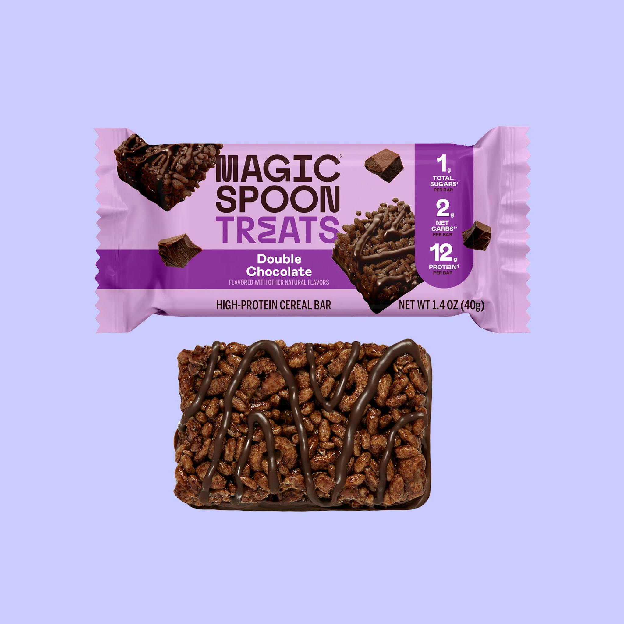 Need Magic Spoon on-the-go? We turned our delicious, high-protein cereal into a high-protein Treat! Tastes just like those classic, crispy cereal bars with 11-12g protein, 1g added sugars, and none of the artificial ingredients.