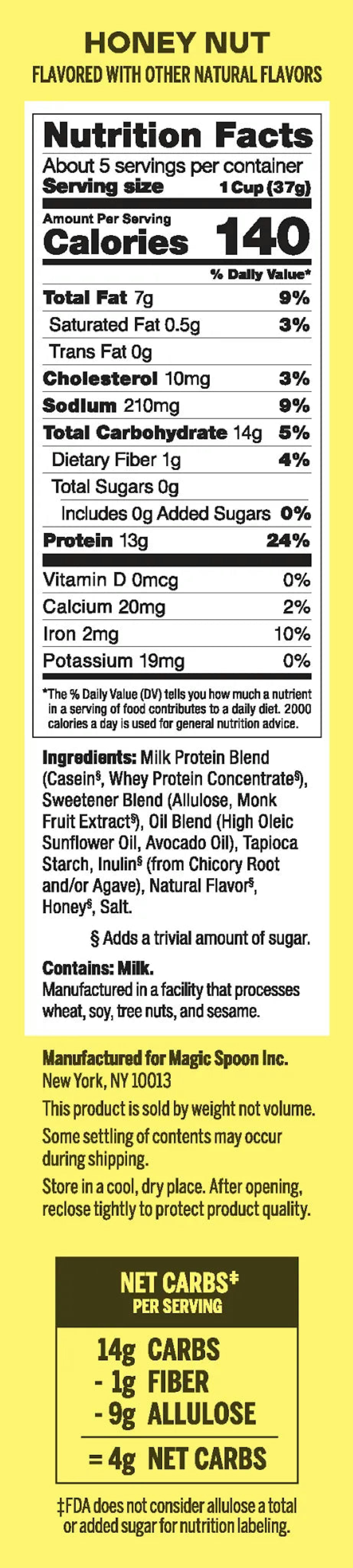 Magic Spoon nutrition comparison table using product-specific data.