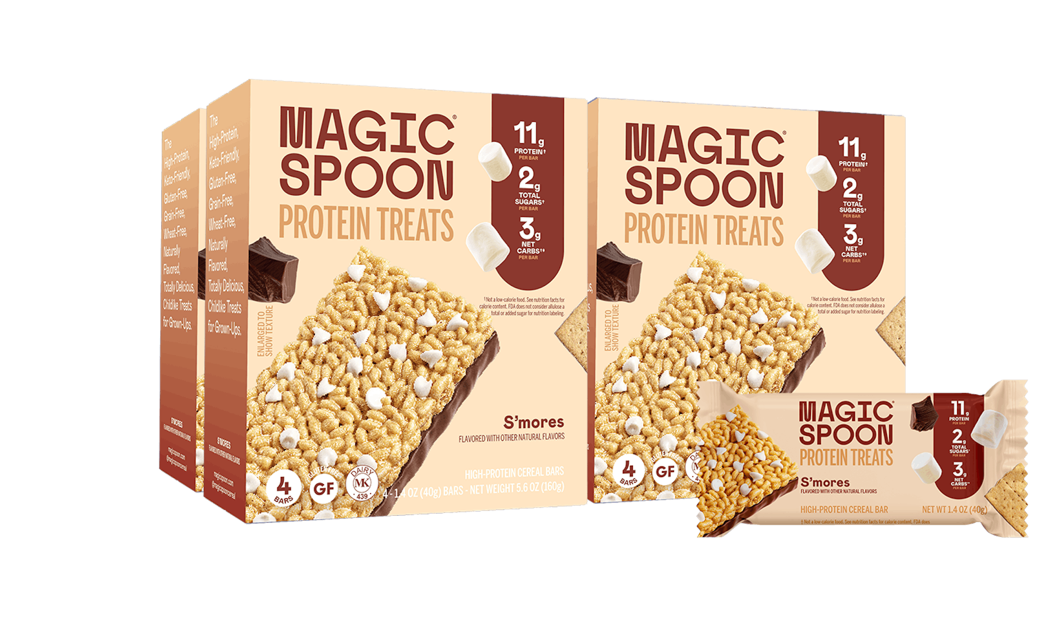 Need Magic Spoon on-the-go? We turned our delicious, high-protein cereal into a high-protein Treat! Tastes just like those classic, crispy cereal bars with 11-12g protein, 1g added sugars, and none of the artificial ingredients.