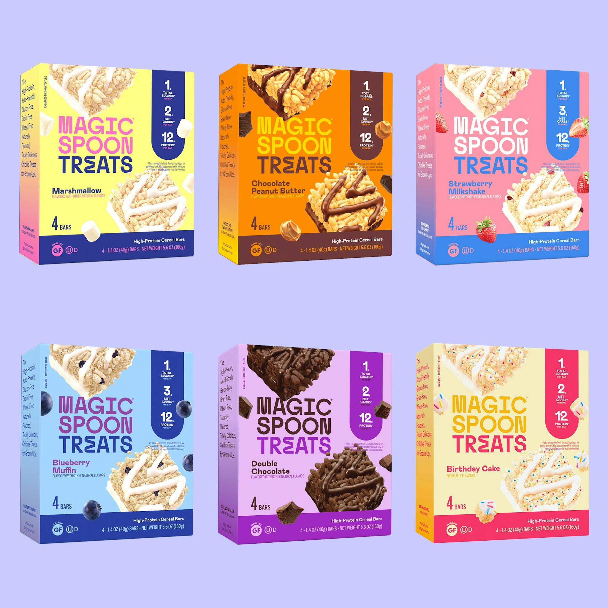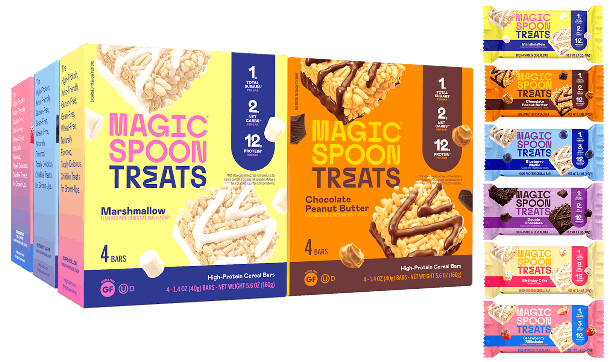 Need Magic Spoon on-the-go? We turned our delicious, high-protein cereal into a high-protein Treat! Tastes just like those classic, crispy cereal bars with 11-12g protein, 1g added sugars, and none of the artificial ingredients.