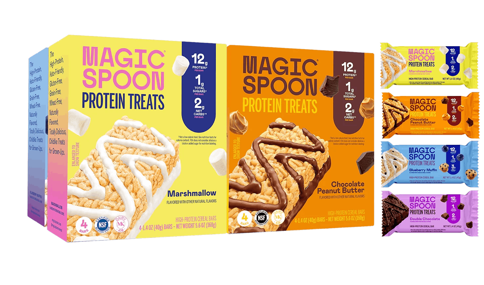 Need Magic Spoon on-the-go? We turned our delicious, high-protein cereal into a high-protein Treat! Tastes just like those classic, crispy cereal bars with 11-12g protein, 1g added sugars, and none of the artificial ingredients.