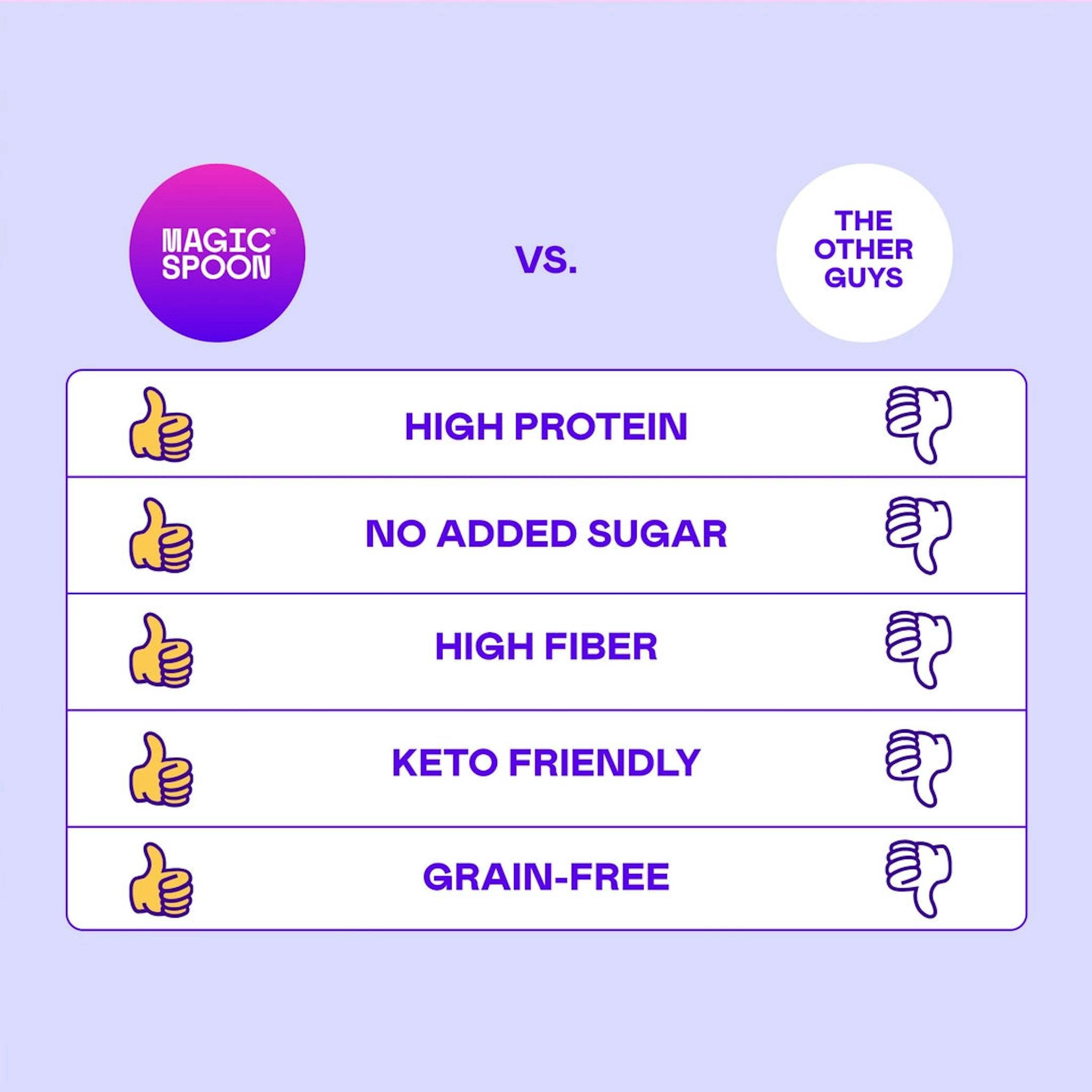 Magic Spoon nutrition comparison table using product-specific data.