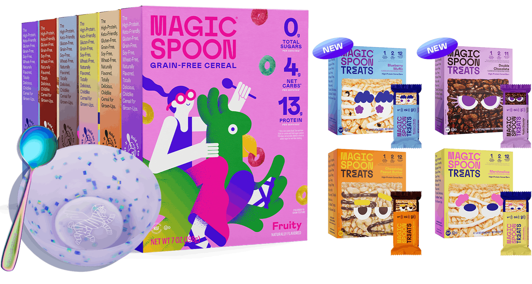 Need Magic Spoon on-the-go? We turned our delicious, high-protein cereal into a high-protein Treat! Tastes just like those classic, crispy cereal bars with 11-12g protein, 1g added sugars, and none of the artificial ingredients.
