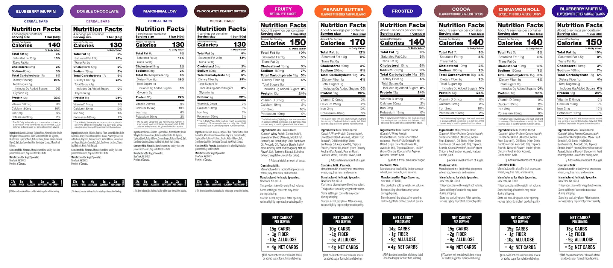 *SERVING SIZES ARE AS FOLLOWS: Treats 40G, FRUITY 38G, PEANUT BUTTER 36G, FROSTED 37G, COCOA 37G, CINNAMON ROLL 37G, BLUEBERRY MUFFIN 38G. INFORMATION AS OF DECEMBER 2022. Treats INFORMATION AS OF September 2023.